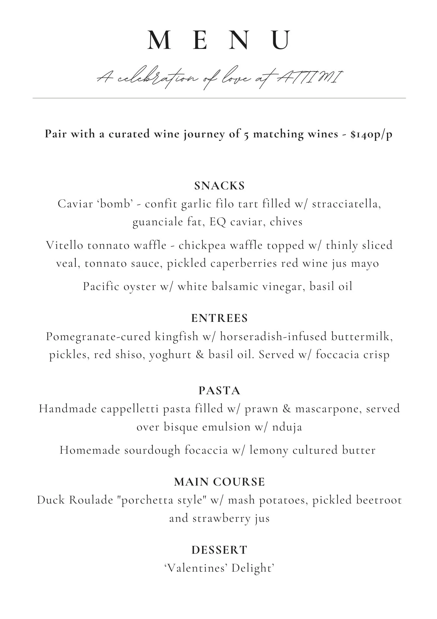 Bookings are ESSENTIAL, with there being 2 distinct dining sessions (earlier at 5.30-6pm; later at 8-8.30pm) & prepayment of food menu being required. Most special dietary requirements can be catered with advance notice - email reservations@attimi.com.au for further clarification/confirmation on dietaries.